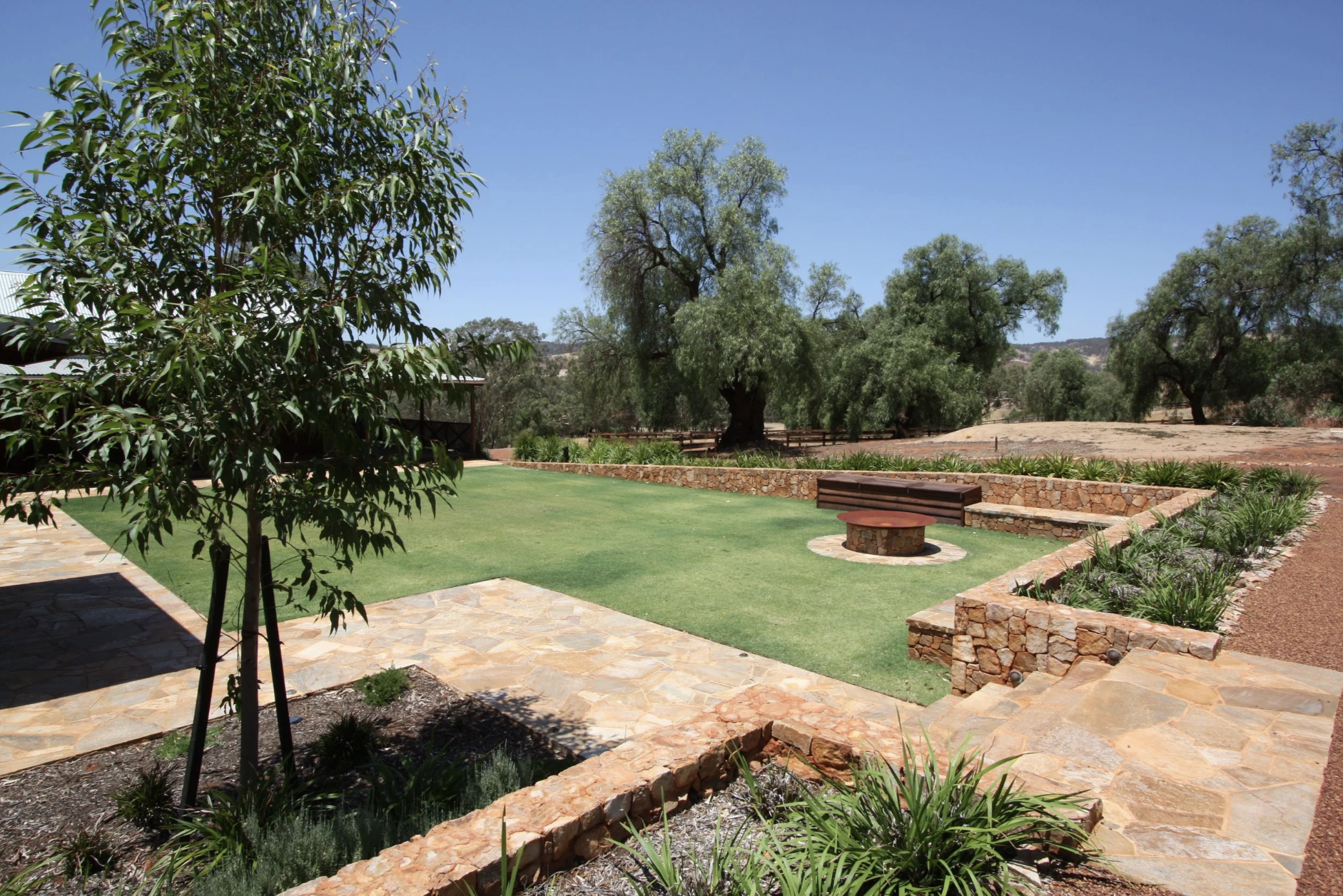 The old shearing sheds were renovated into a rustic entertainment venue, complete with bar and pizza oven.